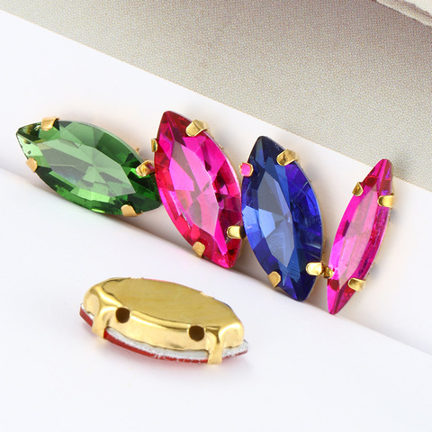 Jc Groothandel Bulk 7*15Mm 4*15Mm Kristal Fancy Stones Goud Metalen Klauw Naaien Op Kledingstuk Glazen Stenen Voor Kleding