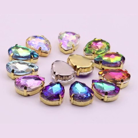 10*14 מ "מ תאו על טופר הגדרת גיליון טיפה קריסטל בצורת קריסטל עם תפירה טופר אבן מהודרת לקישוט בגד